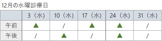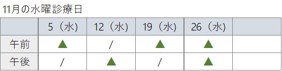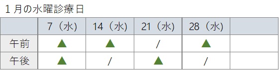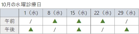 ※水曜日のみ、隔週となる事があるため、下記の表をご参照ください。